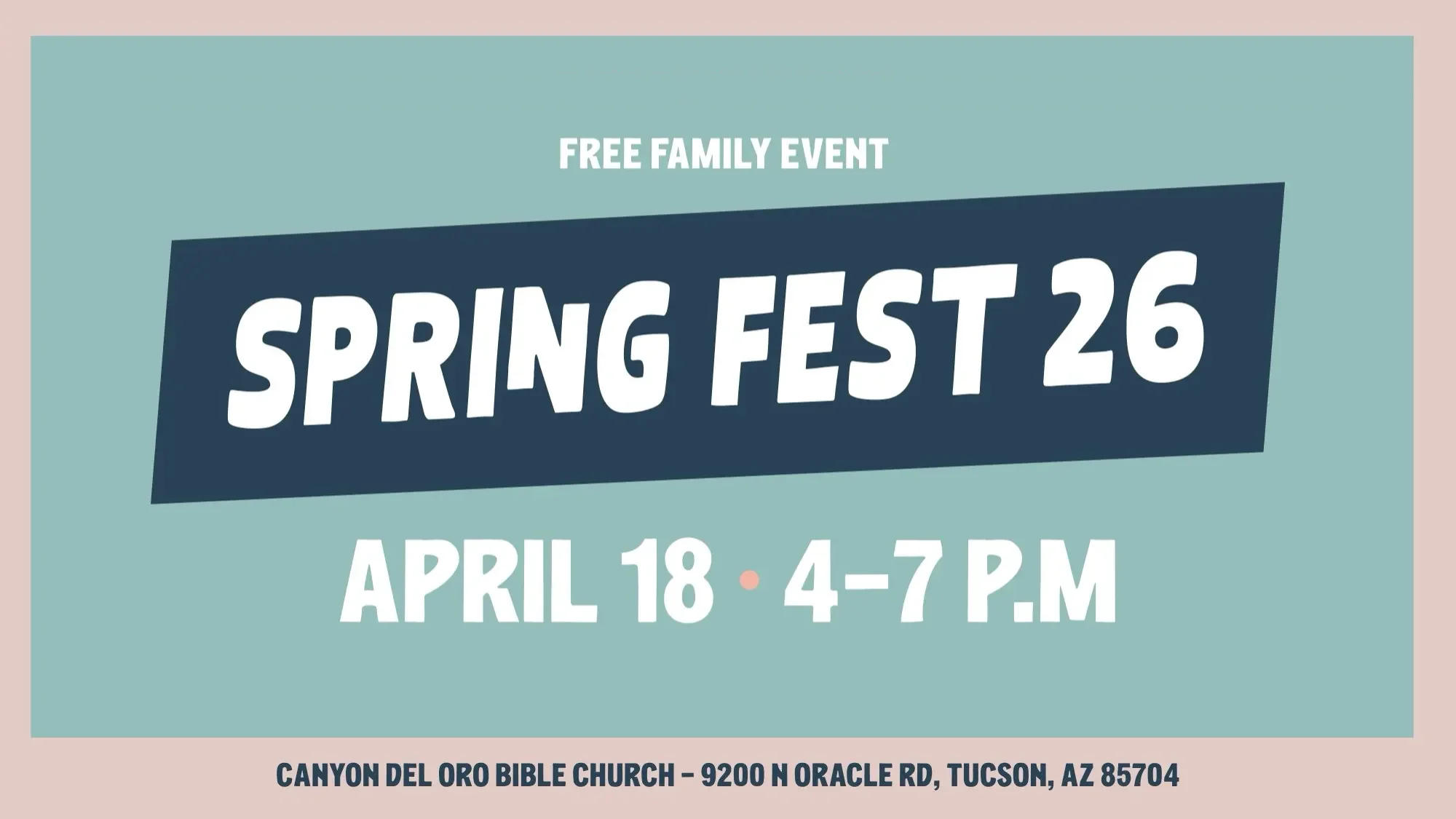SpringFest 2026 A FREE family-fun event | April 18th, 4-7 PM April 18, 20264-7 PM 9200 N. Oracle RoadOro Valley, AZ Completely FREEFor All Ages What to Expect Games & ActivitiesOver 35 games, giant inflatables, dedicated toddler game area, face painting, and balloon animals for endless entertainmentLive MusicCity Psalm Band will be performing from 4-6 PM during the eventFood & TreatsEnjoy food favorites and don’t miss our popular cookie walk—all completely freePrizes & MoreWin prizes through our Tickets-4-Toys program and enjoy a fun-filled afternoon with your family and community Good to Know ParkingAvailable at Pusch Ridge Christian Academy (next door to the church)Food DonationsPlease bring a donation of non-perishable food items for IMPACT of Southern ArizonaQuestions?Contact the church office at (520) 297-3900